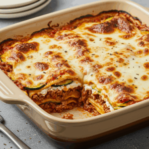 A1: This lasagna swaps traditional pasta sheets for thinly sliced zucchini noodles, drastically cutting the carb count. Combined with a rich, savory meat sauce and creamy cheese layers, it’s a low-carb, high-fat delight that keeps you in ketosis without sacrificing flavor.